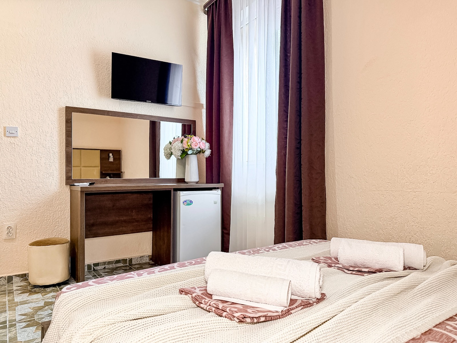 - Современные оборудованные номера: кондиционер, холодильник, телевизор, душ, c/у, электрический чайник;